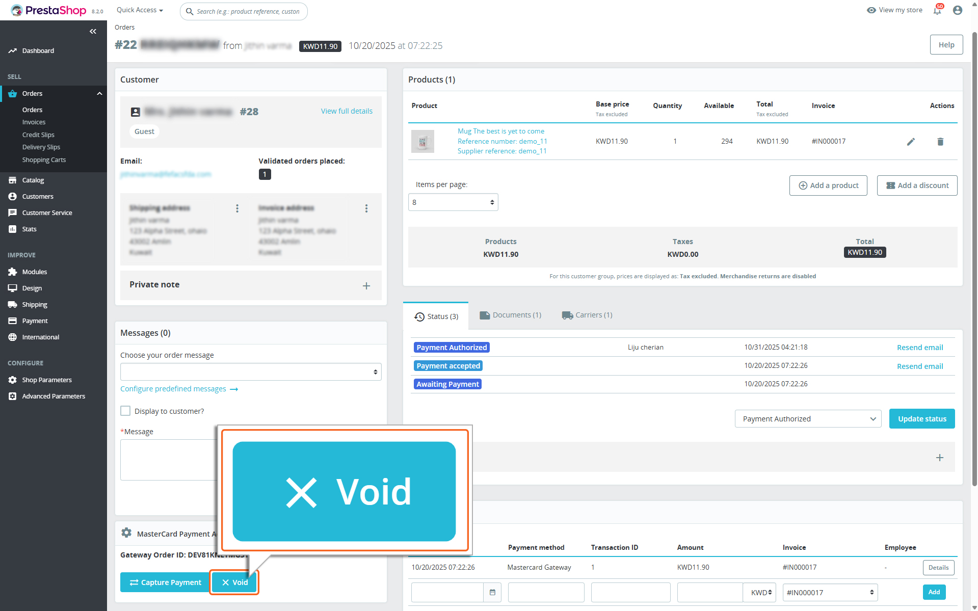 Home > PrestaShop – Mastercard Gateway > Managing Transactions > Void Transaction
