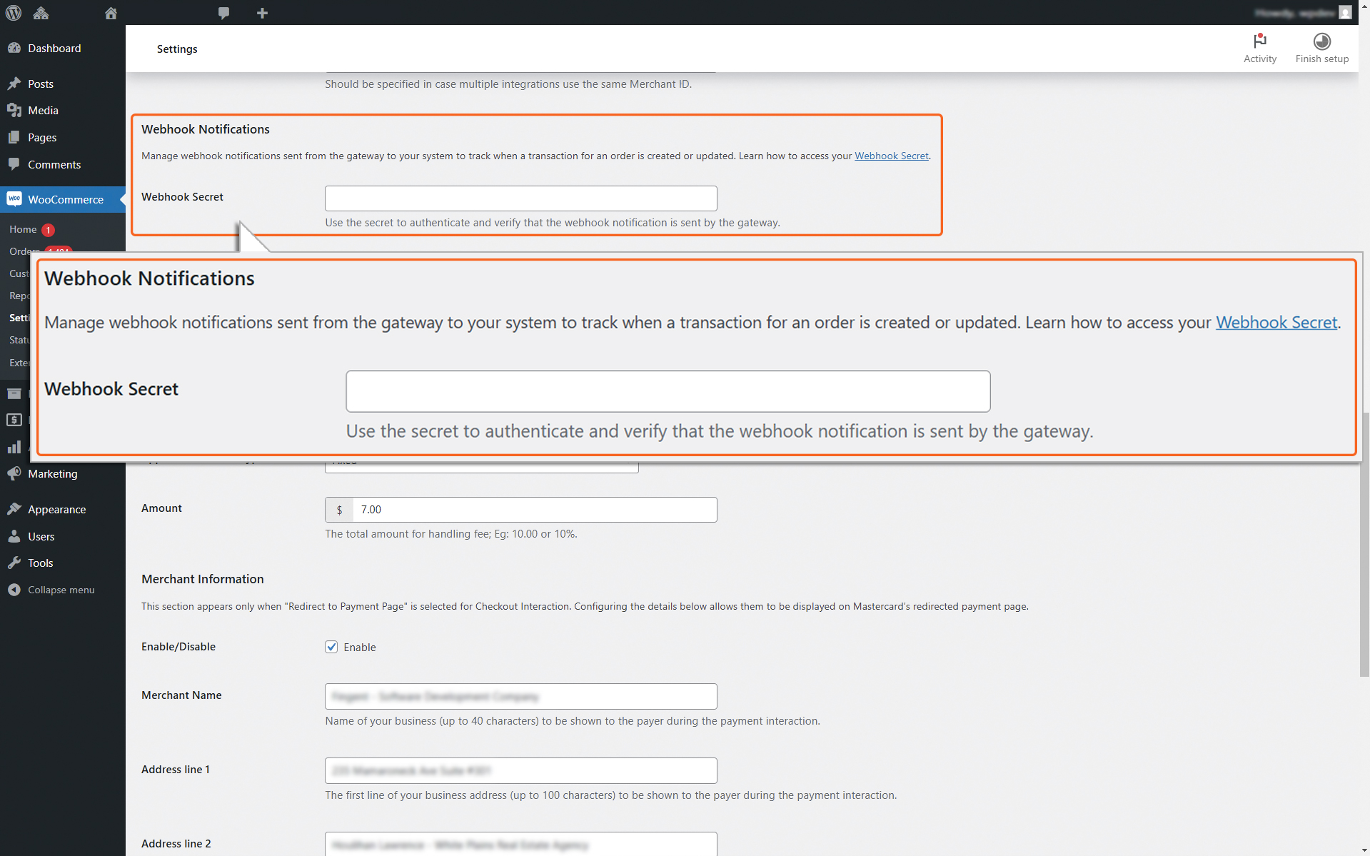 Enter the WebHook secret from your merchant account. Please refer to API Configuration to obtain the Webhook Secret.